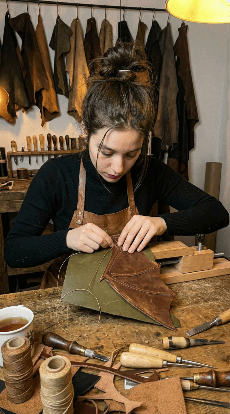 Lily's not a factory. She's one woman in a workshop with leather, tools, and an obsession with dragons.